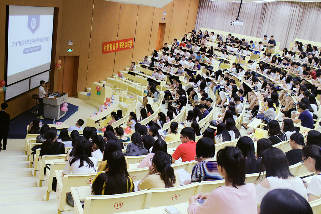 成功考取农业发展银行的叶炜学长、分享了关于银行专业选择、复习资料搜集、时间规划等方面的成功经验,宏兴会计的陈乙金学姐建议有从事会计从业意向的同学要真实评估个人能力,细化时间管理;已考取选调生、签约知名企业的毕业生代表林昕阅学姐和杨雅莉学姐分别介绍了选调生考试及大型企业笔试、面试、小组测试等环节的求职技巧和心得体会,使同学们清晰认识到在求职过程中企业除关注学习成绩之外,更看重学生在校期间工作经历和实践经验等方面的积累以及团队精神的养成等。