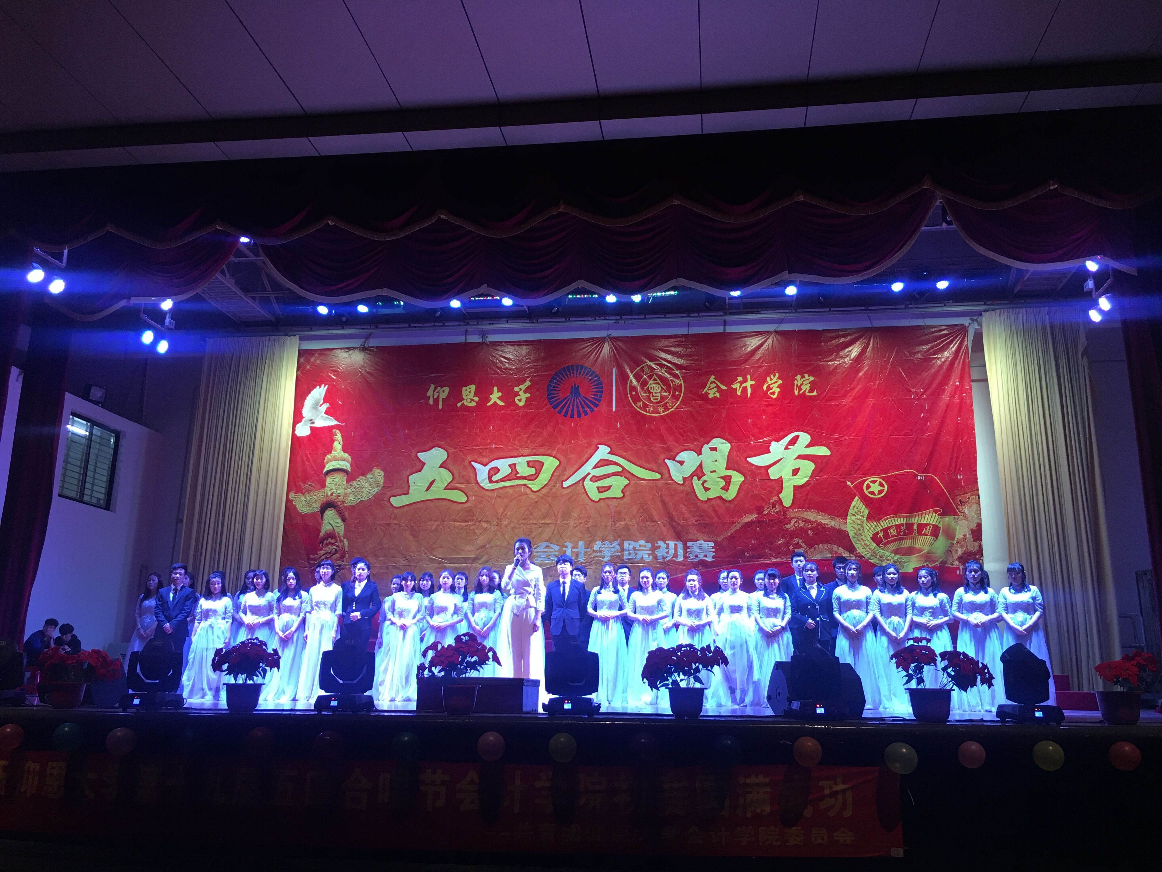 3月29日晚,九游体育官网第十九届五四合唱节九游体育官网初赛于第一教学区普照大礼堂举行。担任本次比赛的评委嘉宾有九游体育官网院长何杨英、党总支书记兼副院长高雪琪、副院长任敏、校团委副书记曹流、会计系主任蒋鹏飞、财务管理系主任薛小青以及九游体育官网全体教师。
