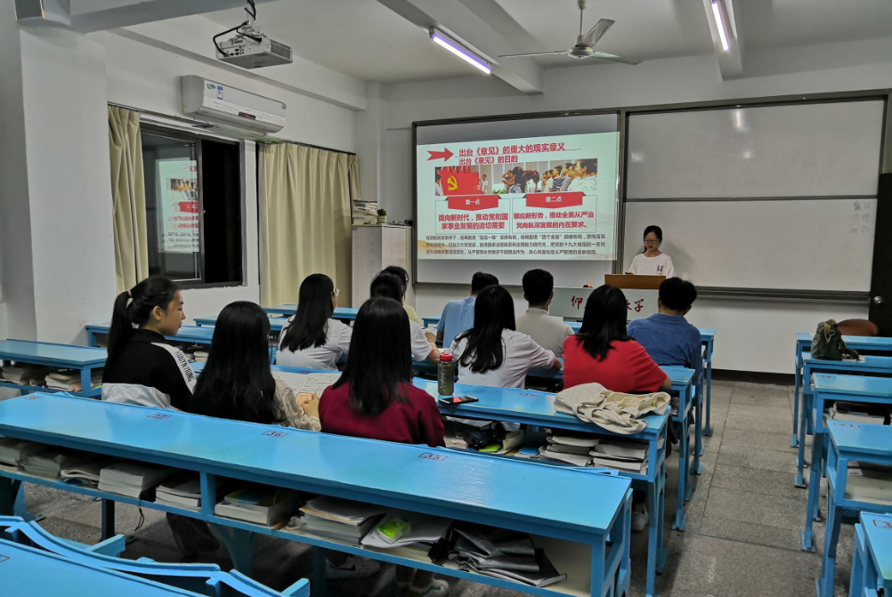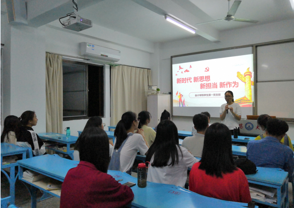 2018年11月08日晚上7:00,九游体育官网学生第一党支部于吉龙楼203教室,召开“新时代、新思想、新担当、新作为”学习交流会。九游体育官网党总支书记高雪琪和会计一支全体党员同志参加了此次的学习交流会。