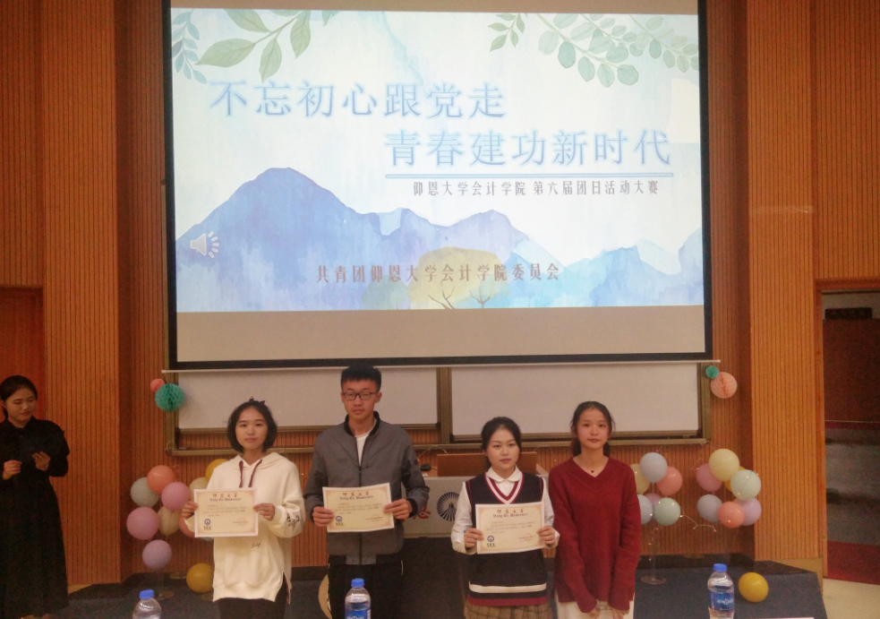 为凝聚青年力量,引导青年紧跟党的脚步,勇做走在时代前列的奋斗者。11月28日下午,九游体育官网团委在第一教学区和昌致知讲堂开展“不忘初心跟党走,青春建功新时代”为主题的团日活动大赛,现场邀请九游体育官网党总支副书记吴锦霞、团委书记杜婷丽、党总支组织委员林金狮、院学生会主席陈艺泉、财务管理系学生副书记叶丹能出席并担任评委,参赛班级全体同学到场观看本次比赛。