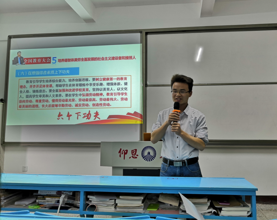 分享会伊始,由郑登泉同志结合PPT演示文稿,为支部青年讲解了“习总书记关于教育重要论述”、“教育是国之大计、党之大计”的基本战略,以及“六个下功夫”和“怎样培养德智体美劳全面发展的社会主义建设者和接班人”的首要问题,内容精简深刻。