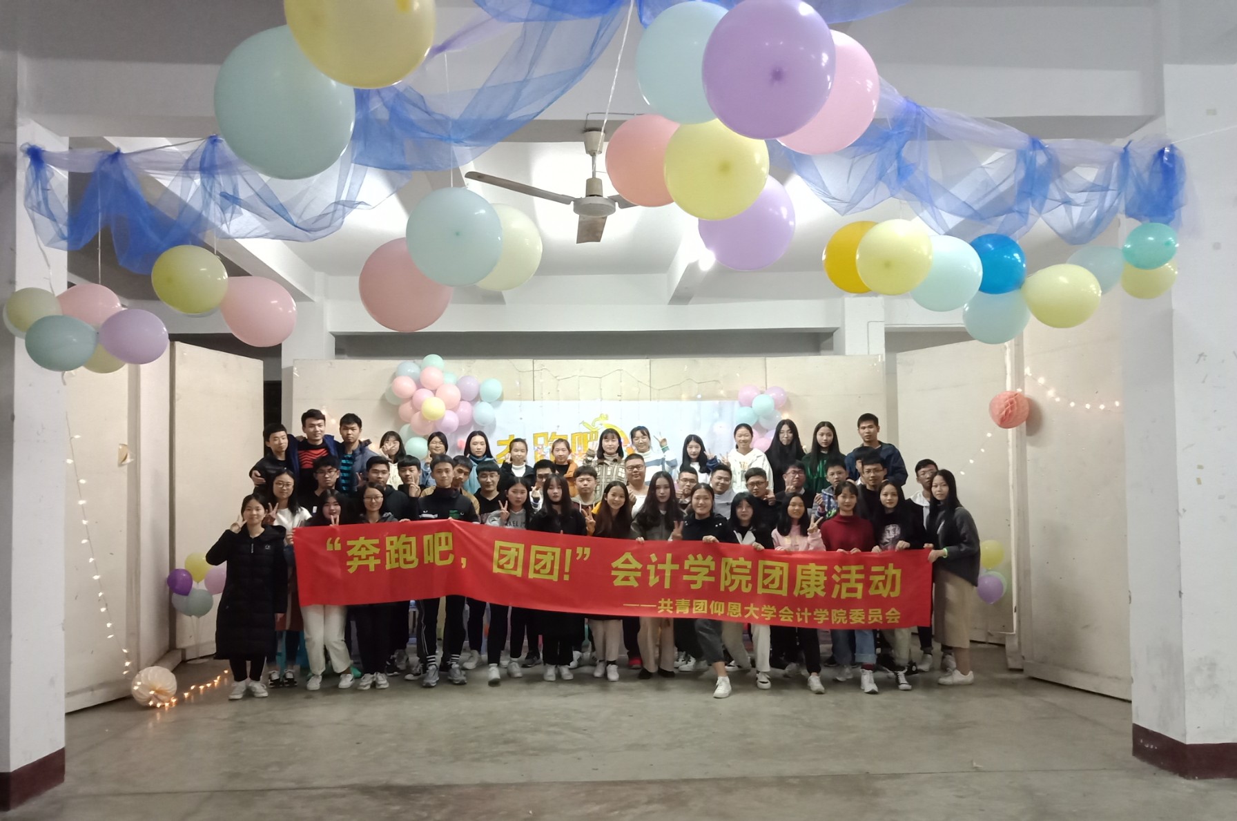 1月4日晚,九游体育官网团委在长春楼二楼开展了以“奔跑吧!团团”为主题的团队健康活动。团委的所有干事们都积极参加,团康活动在欢快的气氛中有序地进行。