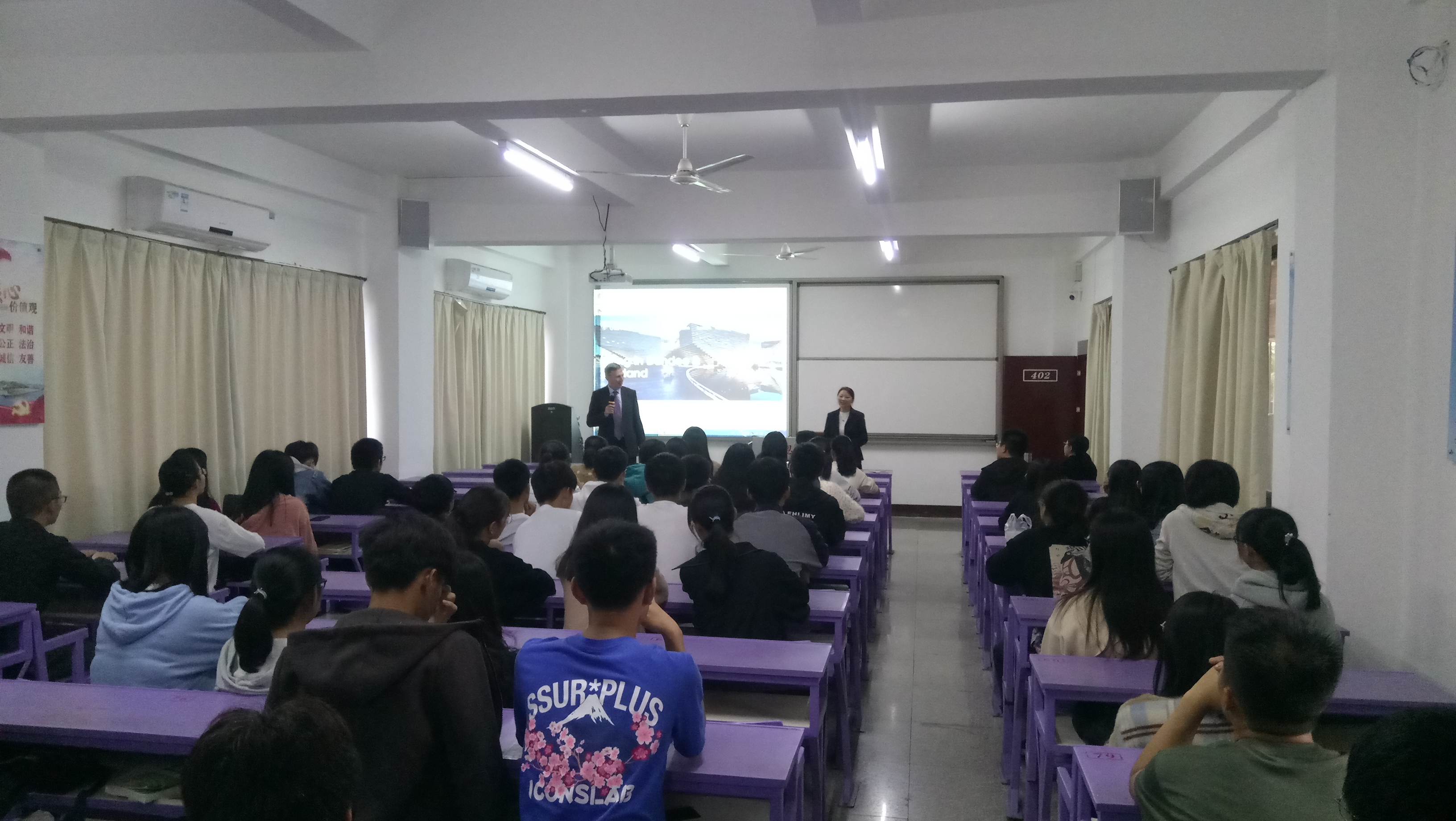 当天下午,国际合作与交流与九游体育官网、工程技术学院联合举办了留学宣讲会。会上,马克巴索副校长热情地向学生们介绍了阿伯泰邓迪大学的地理位置、苏格兰城市风情等校舍信息,并鼓励学生们不要畏惧英语学习,你们远比自己想象的要优秀。阿伯泰代表黄雅玲向两院学生详细介绍了英国阿伯泰大学办学的基本情况,计算机、网络安全等学科特色以及与我校合作项目的开展情况。中国区代表王燕平就现有的留学合作模式进行了介绍。随后,韩勇副处长就学校设立出国留学专项基金、开设出国留学英语(雅思)培训班等情况作了补充说明。(国际合作与交流处/文图)