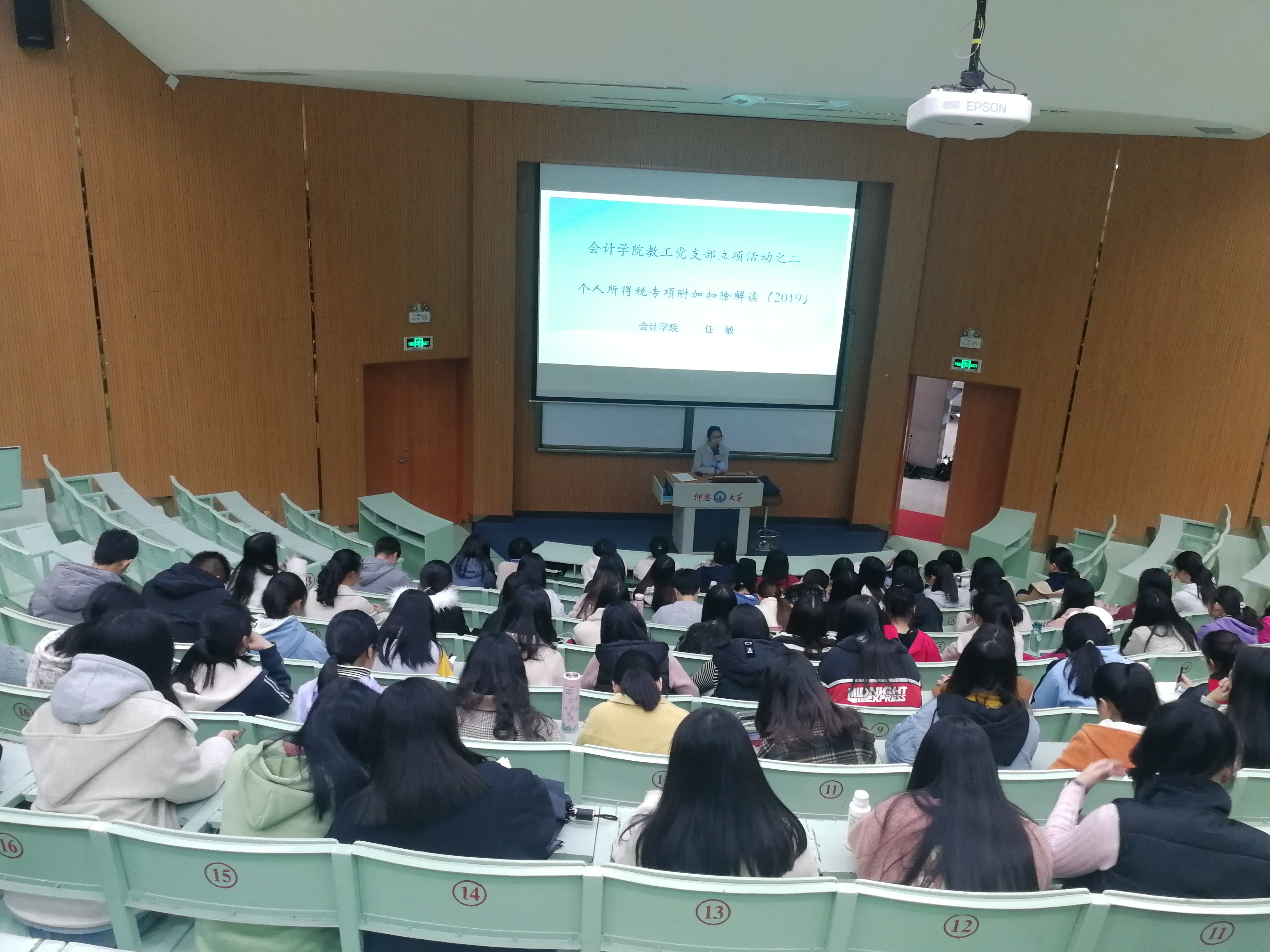 12月5日下午,九游体育官网教工党支部在第一教学区和昌教学楼乐之讲堂开展支部立项活动。九游体育官网副院长任敏老师作题为《个人所得税专项附加扣除解读(2019)》专题讲座,九游体育官网全体党员、入党积极分子一同聆听学习。