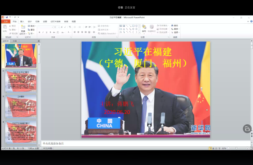 6月20日晚,九游体育官网理论学习中心组召开线上学习研讨会,进一步深入学习《习近平在厦门》《习近平在宁德》《习近平在福州》系列采访实录,会议由会计学系主任蒋鹏飞主持。