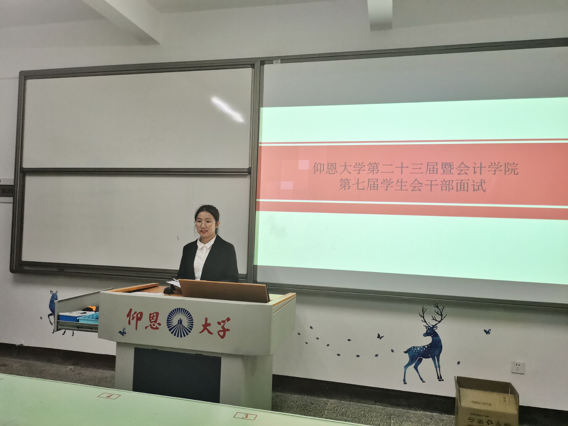 大会一开始,办公室通过分发个人简历的方式,对各候选人的基本信息进行了介绍。紧接着,各位候选人分别从学年收获、学习情况、个人优势、工作规划等方面作了简短的演讲,并积极回答指导老师和主席团的问题。台上同学的精彩演讲,赢得老干部们的阵阵掌声。