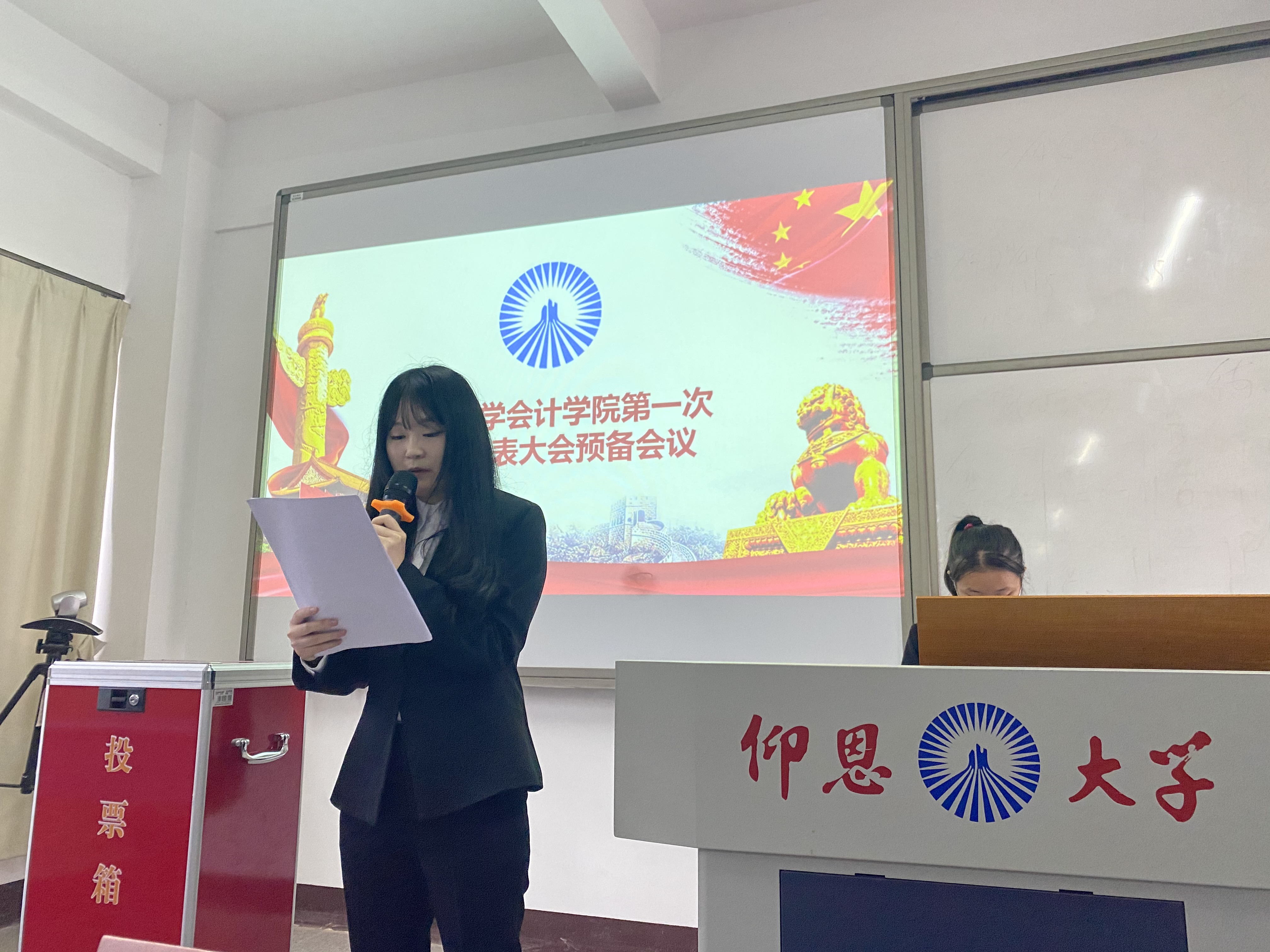 12月10日下午4:00,九游体育官网第一次学生代表大会(下面简称“学代会”)在九游体育官网第一教学区吉龙楼404和405教室召开。九游体育官网党总支副书记吴锦霞、党总支组织委员林金狮、学生会指导老师蔡米糠、学生会主席团成员以及学院57名学生代表参加了此次会议,会议由院学生会执行主席林欣茹主持。