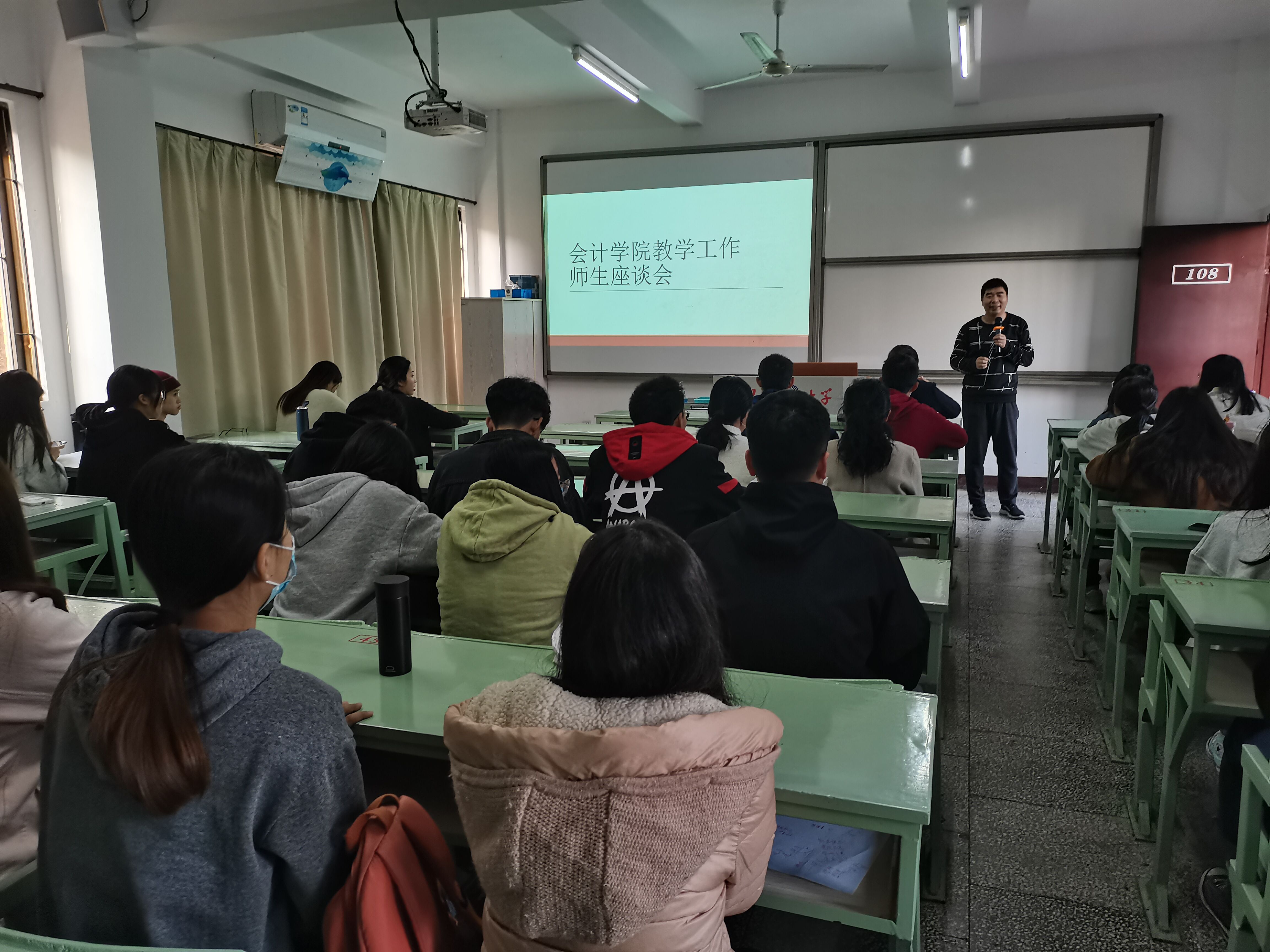 为进一步深化教学改革,提高教学质量,增强师生之间的交流,全面了解学院现阶段的教学质量,12月28日下午四点,九游体育于吉龙楼108教室成功召开“九游体育官网教学工作师生座谈会”,参加座谈会的有九游体育官网党总支书记兼副院长高雪琪、副院长任敏、会计学系主任蒋鹏飞、财务管理系主任薛小青、教师代表和学生代表。