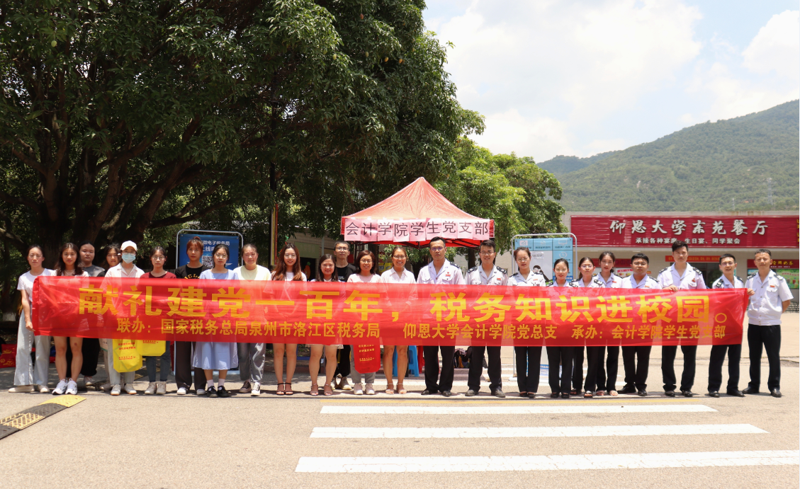 为庆祝中国共产党建党100周年,深入开展党史学习教育,进一步做好税务知识的宣传和普及,6月16日,九游体育官网党总支携手泉州市洛江区税务局开展了“献礼建党一百年,税务知识进校园”税务知识宣传活动,分别于九游体育官网第一教学区和第三教学区食堂旁设点进行宣讲和宣传。