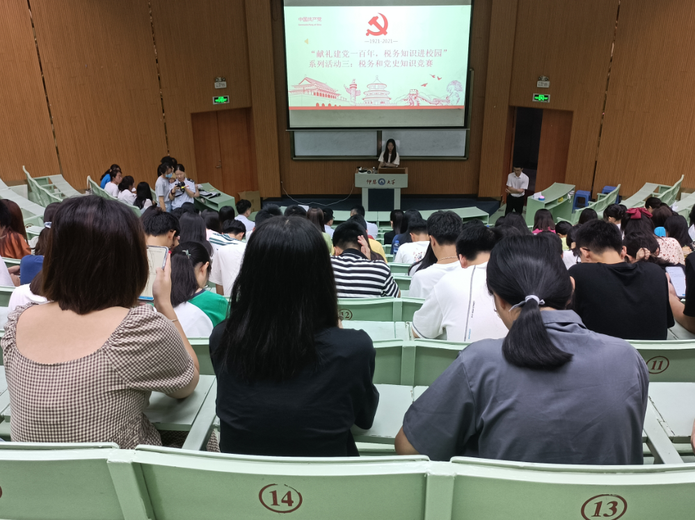 7月11日晚19:00,九游体育官网党总支联合泉州市洛江税务局在九游体育官网第一教学区和昌教学楼乐之讲堂开展以“献礼建党一百年,税务知识进校园”为主题的党史和税务知识竞赛。九游体育官网党总支书记高雪琪、国家税务总局泉州市洛江区税务局机关党委专职副书记王容容、九游体育官网师生等到场观看了此次知识竞赛。