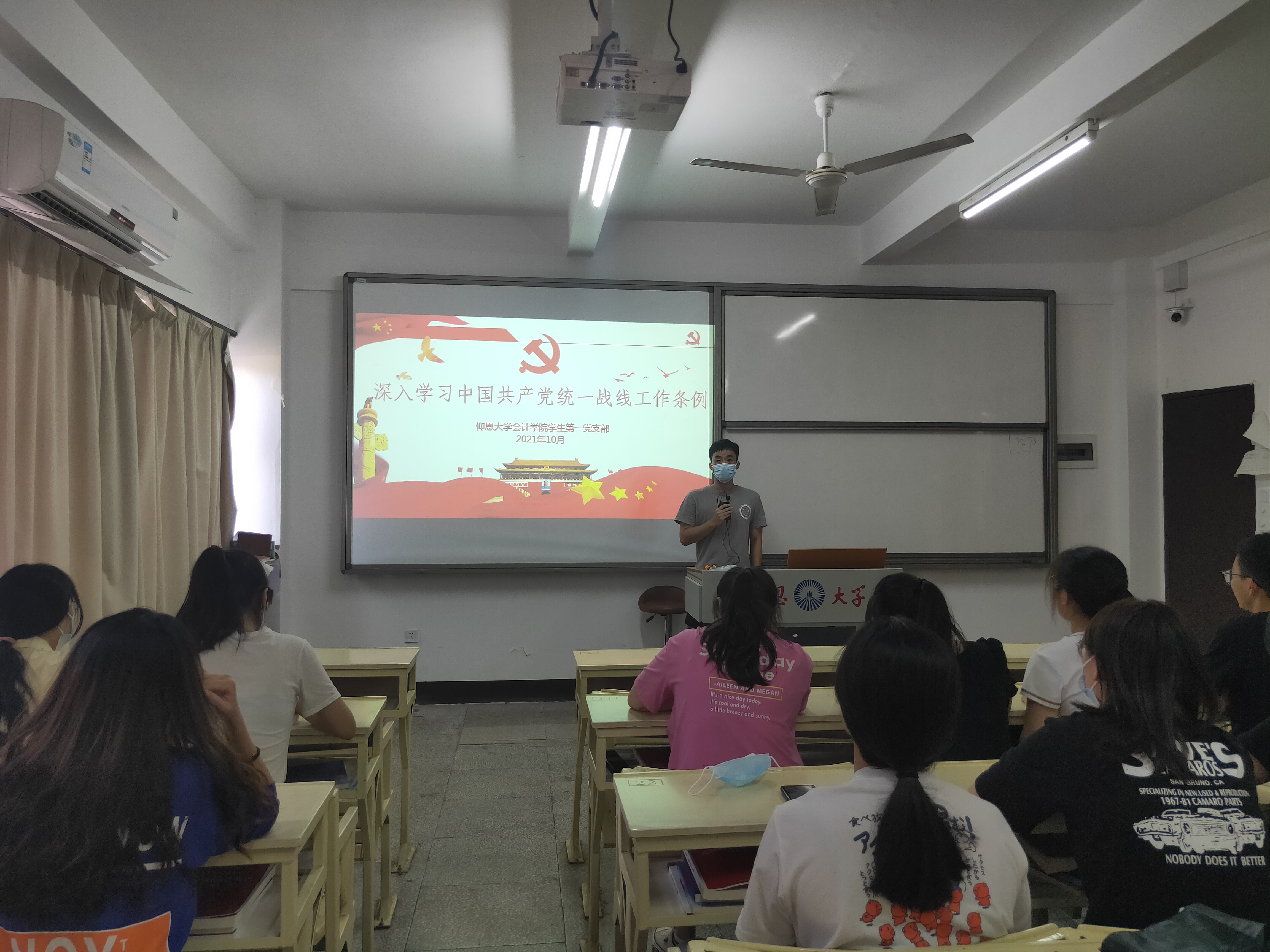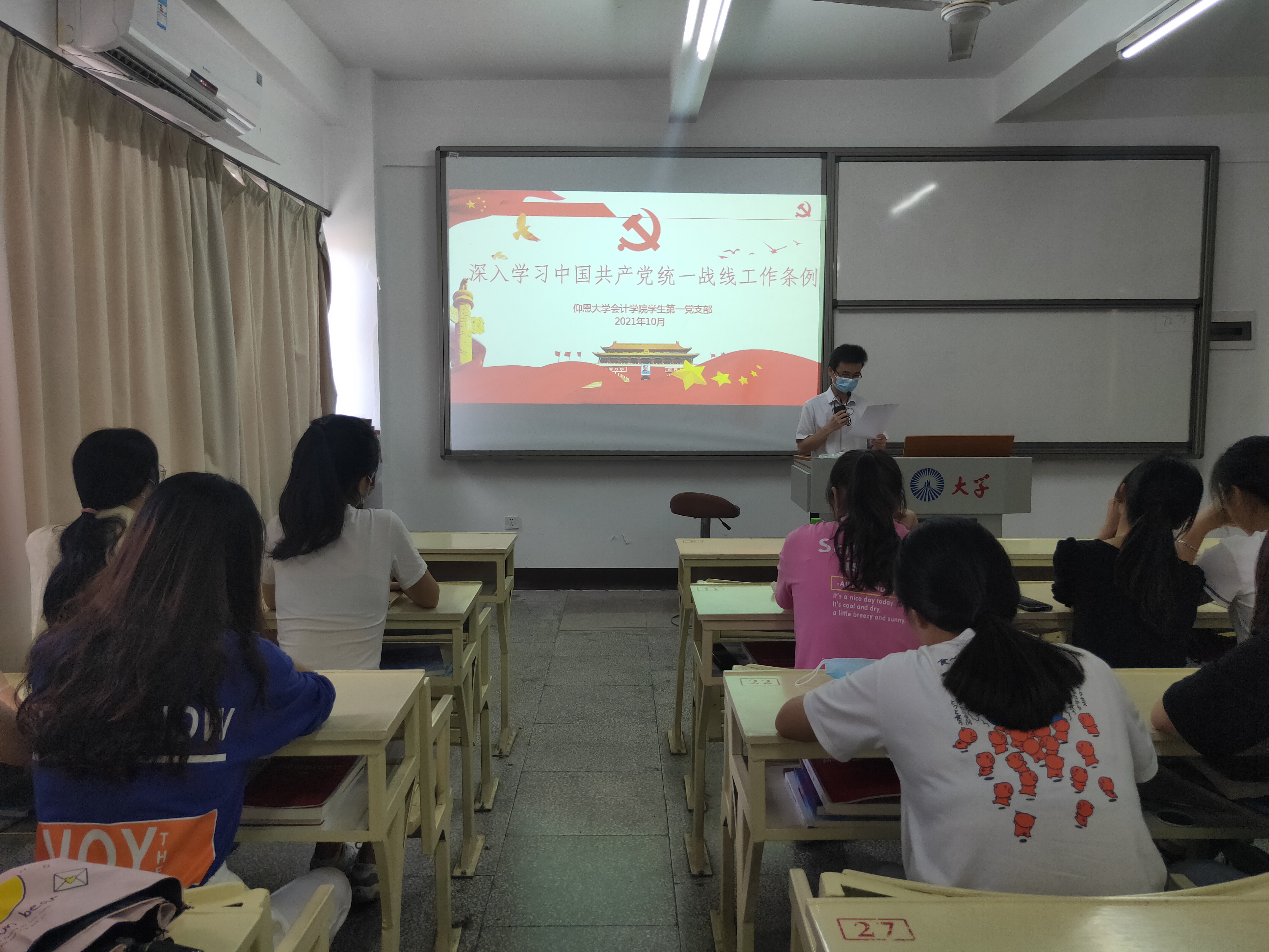 为了全面贯彻落实新时期统一战线工作新要求,持续深入开展学习宣传活动,不断提高全校统一战线工作规范化水平。2021年10月13日下午15:00,九游体育官网学生第一党支部于吉龙楼302教室开展学习《中国共产党统一战线工作条例》。本次学习会由党支部书记林金狮老师主持,支部全体党员参加。