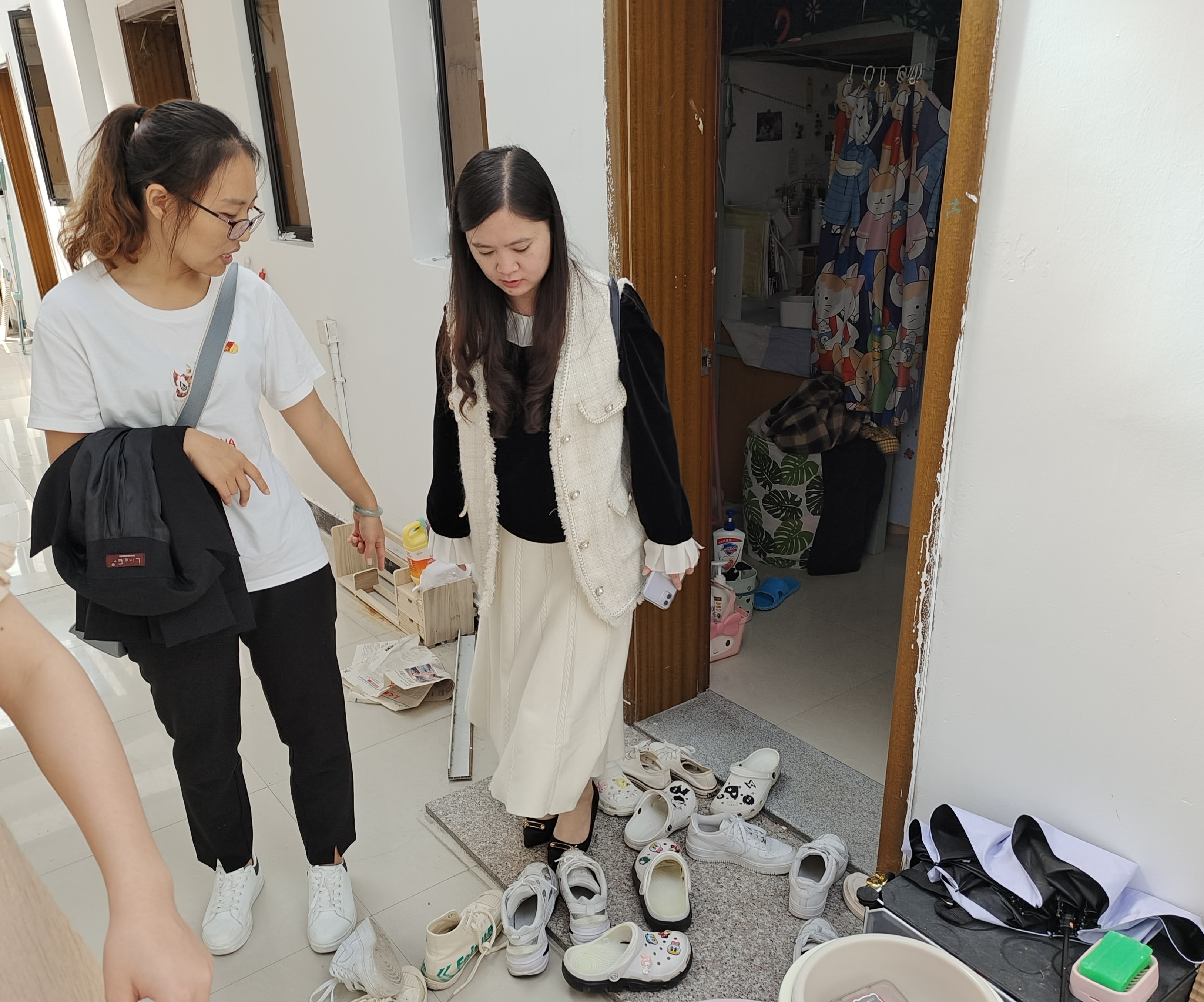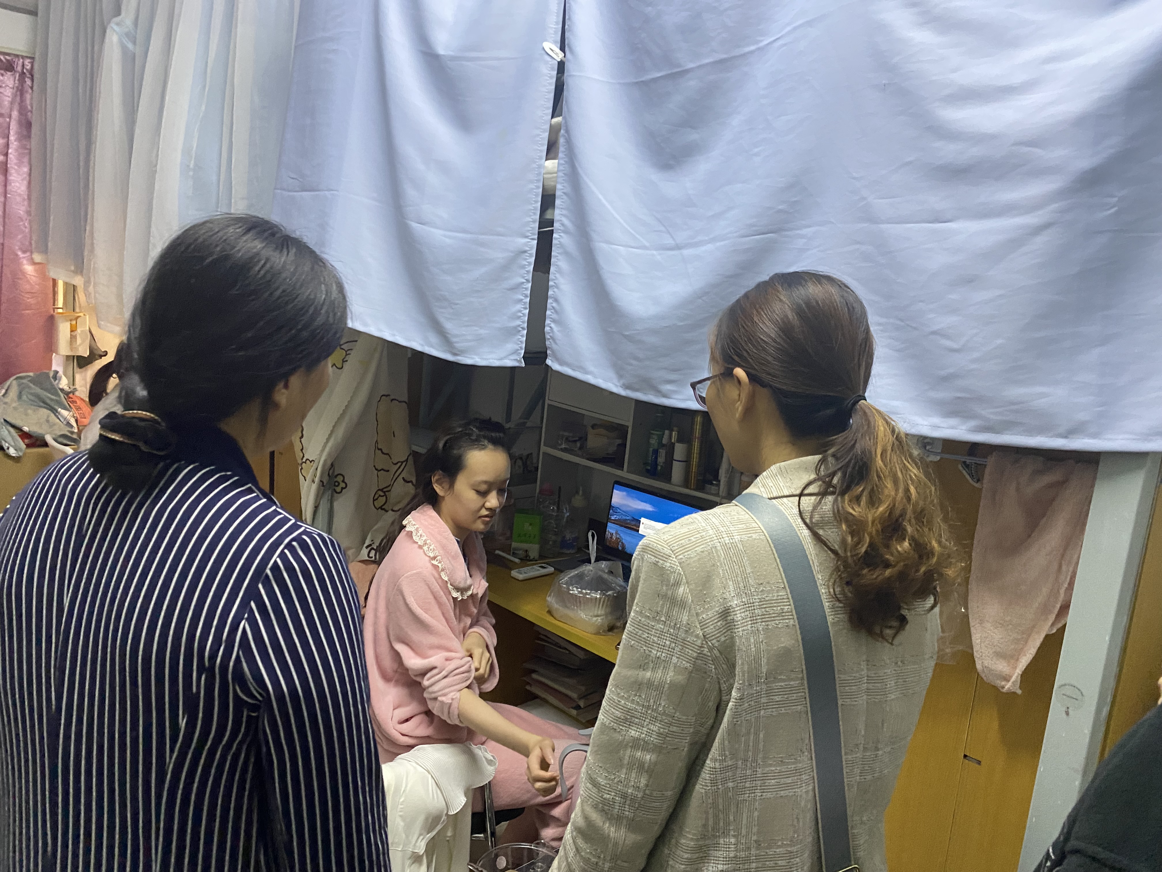 学院检查小组对于每间宿舍的卫生情况、疫情防控安全情况、安全用电以及违规电器使用问题进行逐一检查。在检查过程中,学院领导与同学们深入交流,了解学生们在学习生活中遇到的困难,并从饮食健康、宿舍卫生、通风消毒、消防安全等方面对同学们提出建议和要求。