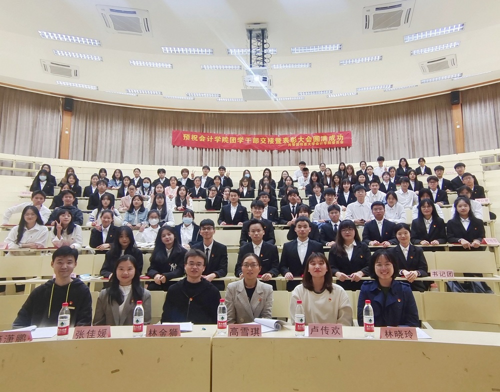 128日晚,九游体育官网第九届团学干部交接暨表彰大会在致知讲堂顺利召开。院党总支书记高雪琪、院党总支组织委员林金狮、院团委书记卢传欢、院学生会指导老师张佳媛、院学生财管系支部书记籍潇鹏和院学生会计系支部书记林晓玲出席本次表彰大会。