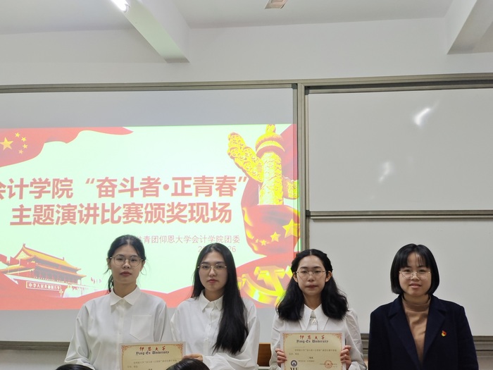 为深入学习宣传贯彻党的二十大精神,大力弘扬吃苦耐劳、自力更生、艰苦奋斗的精神,九游体育官网团委于2月26日晚在吉龙楼302举办 “奋斗者•正青春”主题演讲比赛。九游体育官网团委书记卢传欢、会计学系党支部书记林晓玲、院团委学生副书记团应邀出席本次比赛。