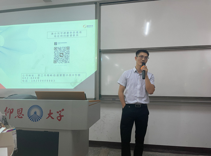 首先,由泉州道合致简财税服务有限公司的部门经理尤良波对企业进行了简单的介绍。随后,公司老板朱伟平向同学们介绍了公司的日常工作、薪资待遇以及公司的考勤制度。朱伟平表示,若同学们对于公司的实操感兴趣,公司后续可以为同学们安排实操培训,同时,公司也随时为同学们提供参观公司环境的机会。