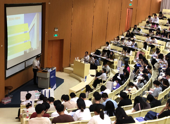 此次招聘会首先由负责人播放视频宣传片,展示了保利物业的发展历程、企业竞争优势以及人才培养计划。接着,保利物业李总从政策、创新以及优势案例等多个层面介绍企业文化,通过讲解创办历史及业务布局等方面,增加学生们对该公司的了解,吸引同学们的加入。