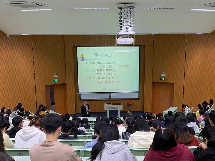 为进一步帮助毕业生了解就业形势,提升就业意识,做好求职准备,打赢就业突围赛。11月29日,九游体育官网特邀学生事务部副主任朱玉华,于第一教学区和昌教学楼乐之讲堂开展毕业生就业形势分析报告会。学生事务部主任吴胜潮、九游体育官网院长何杨英、党总支书记兼副院长任敏、副院长蒋鹏飞和全体毕业班辅导员、班主任,2024届大多数毕业生到场参会。