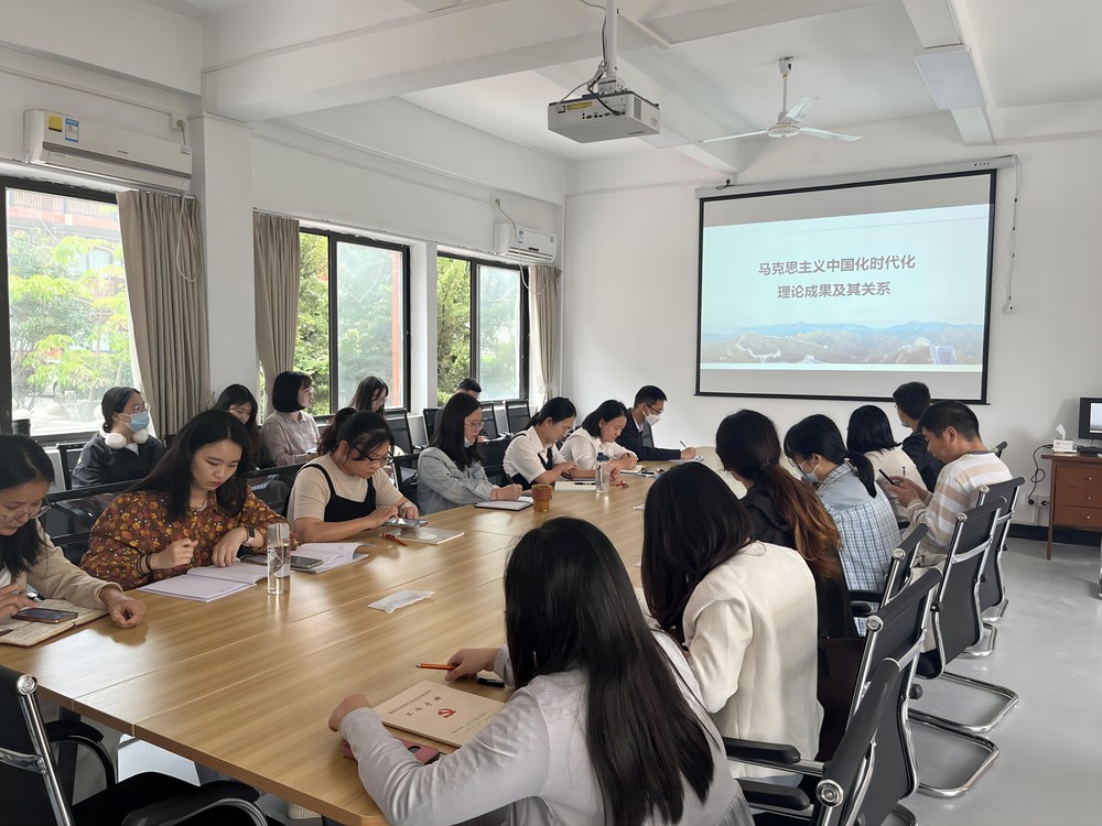 学习会上,林金狮老师结合中国实际,深入浅出地阐述了马克思主义中国化、时代化的重要性和必要性,详细阐述了习近平新时代中国特色社会主义思想的相关内容,促使在座教师对马克思主义理论在中国的创新发展有更加全面和深刻的认识。