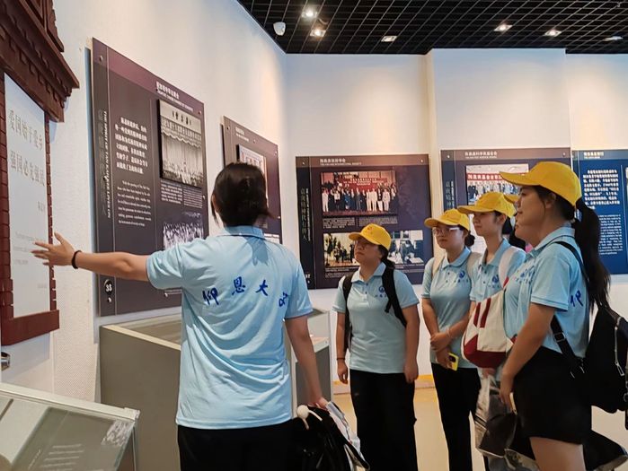 在庄严而肃穆的纪念馆内,实践队员们先后参观了“南洋巨商,矢志报国”“倾资兴学,情系乡国”“纾难救国,民族之光”以及“嘉庚现象,诚毅同行”四个展馆。这些展馆通过一幅幅生动的图片、详实的史料和震撼的音像资料,将陈嘉庚先生波澜壮阔的一生缓缓铺陈在队员们眼前。从早年经商的艰辛,到倾资兴学的壮举,再到晚年为国家和民族做出的卓越贡献,陈嘉庚先生的每一个故事都深深触动了实践队员们的心弦。大家纷纷表示,这不仅是一次视觉与知识的盛宴,更是一场心灵的洗礼和精神的升华。