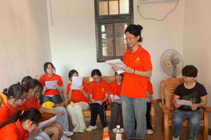 队员们围坐一堂,满怀激情地分享着各自的心得体会。从林语堂纪念馆的文学探索,到高坑革命老区的红色洗礼;从红军坚韧精神的深刻感悟,到烈士陵园中对责任担当的重新认识;队员们的发言中充满了对这段经历的珍惜与感慨。随后,村委会代表进行总结发言,对实践队员们的到来和辛勤付出表示衷心的感谢并赞扬了队员们以实际行动传承红色精神,为老区带来了新的活力与希望。