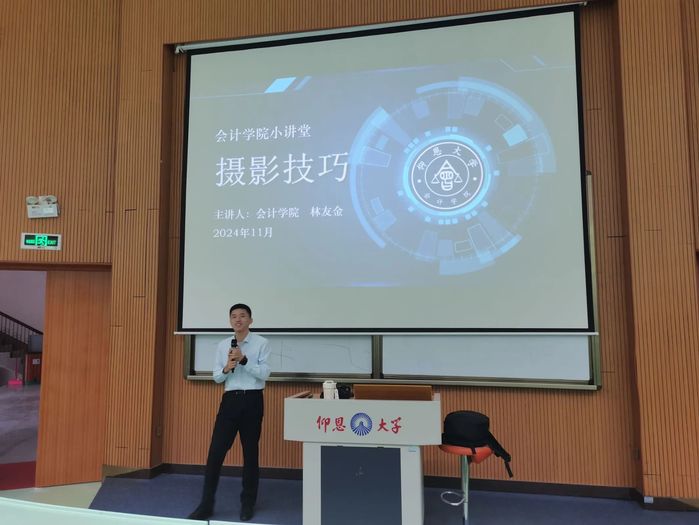 在活动期间,一系列精彩纷呈的小讲堂依次展开。11月13日,由林友金老师主讲的摄影技巧小讲堂在和昌教学楼乐之讲堂顺利开展,课程内容涵盖了摄影基础知识、构图技巧以及拍摄技巧等,使同学们对摄影艺术有了更深入的了解与掌握。