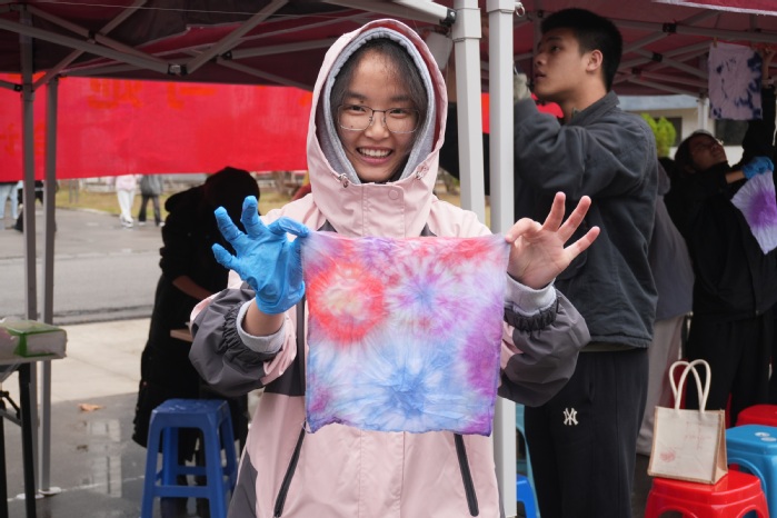 此次扎染活动,不仅让女生们在忙碌的学习生活中暂得放松,用双手创造出独一无二的色彩记忆,更让非遗技艺在指尖焕发出新的光芒。九游体育官网学生会与普照书院成功将传统手工艺与校园节日相结合,为校园文化建设增添一抹亮丽色彩。(林友金/文图)