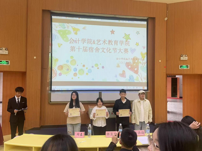 此次大赛现场氛围高涨,各宿舍通过PPT展示并结合视频等形式展现出了自己的宿舍文化。最终,天山楼113宿舍荣获一等奖;威海楼421宿舍、天山楼112宿舍获得二等奖;威海楼216宿舍、威海楼110宿舍、南海楼411宿舍获得三等奖;威海楼216宿舍、南海楼513宿舍获得最佳创意奖;南海楼512宿舍、威海楼207宿舍、威海楼505宿舍、衡山楼225宿舍、衡山楼222宿舍、威海楼515宿舍获得优秀奖!同学们诠释了青春的活力与梦想,展现了宿舍风采和积极向上的精神风貌,赢得了观众们阵阵掌声与喝彩。
