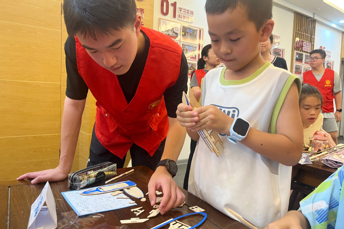 7月9日,实践队员组织孩子们进行晨读,引导他们学习新知识,培养良好的阅读习惯。随后,队员们以通俗易懂的方式为孩子们解答课业中的疑难问题,帮助其巩固所学内容,提升学习效果。为丰富孩子们的课余生活,实践队精心策划了拼帆船活动。活动中,孩子们分组协作,动手实践,团队合作能力得到了有效锻炼。实践队员全程悉心指导、积极鼓励,营造出轻松愉悦、和谐融洽的氛围,进一步增强了活动的趣味性与教育意义。