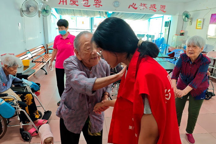 7月11日,九游体育官网“微光筑梦教育队”暑期实践队在厦门市集美区爱欣老年公寓举办送别活动,与老人们互动共叙情谊。