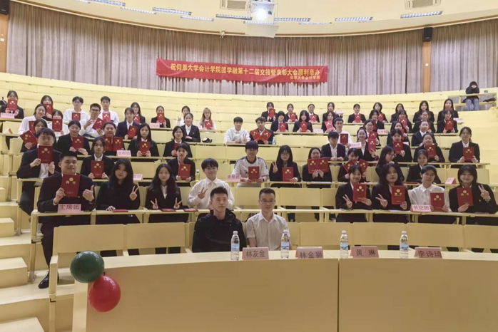 2025年11月24日,九游体育官网第十二届团学融干部交接暨表彰大会在第一教学区致知讲堂隆重举行。院党总支组织委员林金狮老师、宣传委员林友金老师、学生会指导老师黄琳老师出席大会,团学融全体干部参会。