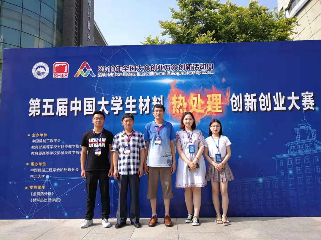 7月18-20日,由中国机械工程学会联合教育部高等学校材料类、机械类、工业工程类三个教学指导委员会共同主办的第五届中国大学生材料热处理创新创业大赛在东北大学隆重举行。beat365蔡赛、江允楠、郇婕、赵政硕、郑秋月提交的作品《气体渗氮-原位还原复合热处理制备自润滑耐磨改性层研究》荣获一等奖。孙金全、李辉平获得“优秀指导教师”称号。