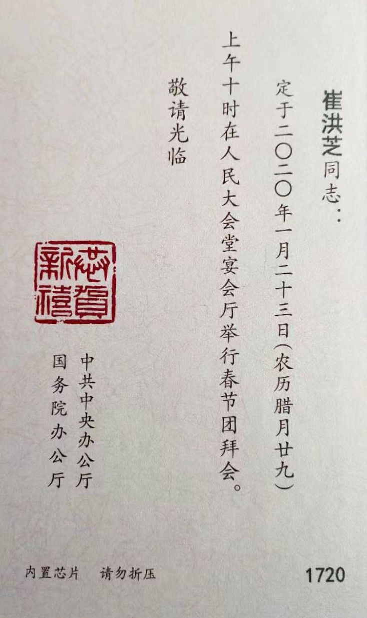 崔洪芝教授受邀参加中共中央国务院2020年春节团拜会