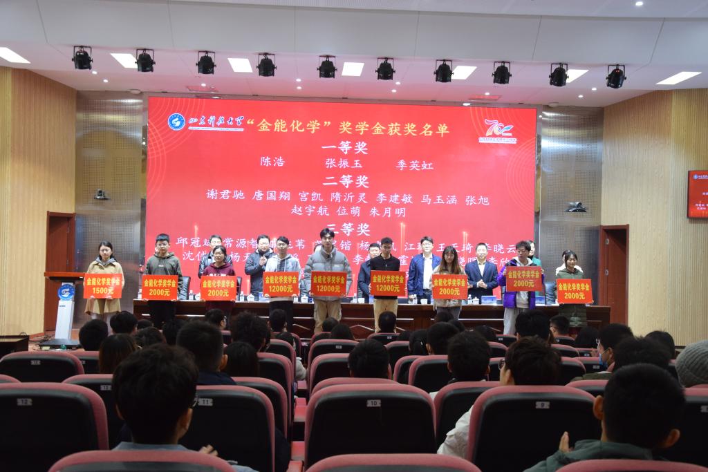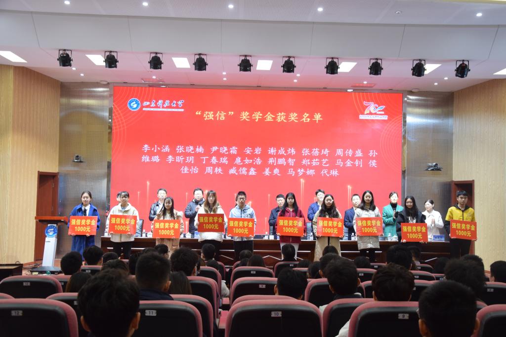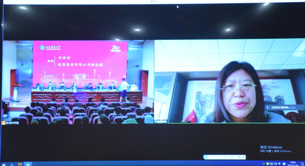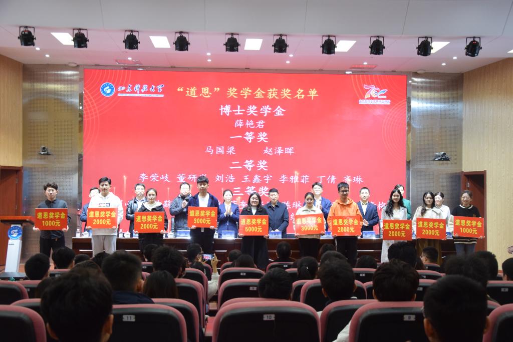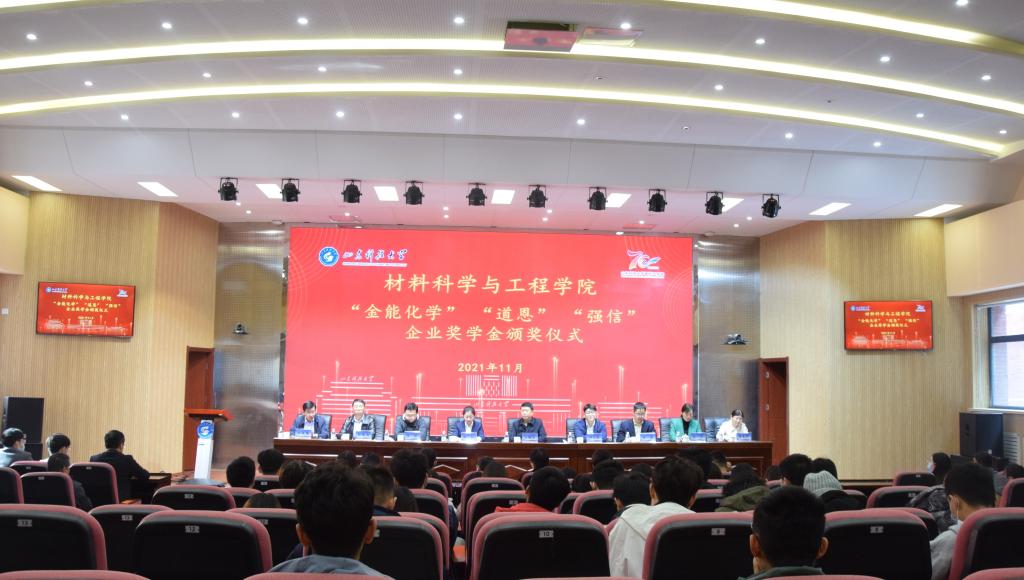 11月19日上午,beat365唯一官方网站在J9-144报告厅成功举办2021年“金能化学、道恩、强信”企业奖学金颁奖仪式。本次会议采用线上线下相结合的方式进行,道恩集团有限公司副总裁刘丽丽、金能化学(青岛)有限公司人力资源部经理陈红、合作发展处处长王晓东、校团委书记尹立明、教务处副处长刘冰、研究生工作部副部长刘松、学生工作处副处长孔环、beat365唯一官方网站领导班子成员及师生代表参加了本次颁奖仪式。仪式由beat365唯一官方网站党委副书记兼副院长李建楠主持。