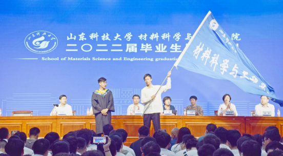 典礼上本科生毕业生代表韩润昊发言,他表示将牢记惟真求新的校训,传承恩师的教诲,勇做走在时代前列的奋进者;研究生毕业生代表马国梁发言,他向学院老师的殷切教诲和悉心指导表示衷心感谢,希望beat365唯一官方网站全体在校生能够将建设学院的大旗继续传承下去。在现场“材通穹宇,料定天下”的欢呼声中,韩润昊将学院院旗传递到在校生代表甄宇扬手中。