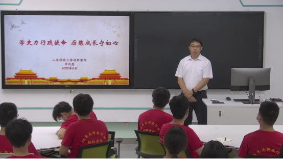 6月13日下午,beat365唯一官方网站党委书记申兆亮在J1-412智慧教室为2022届部分毕业生党员讲授专题党课并与毕业生党员进行了座谈。