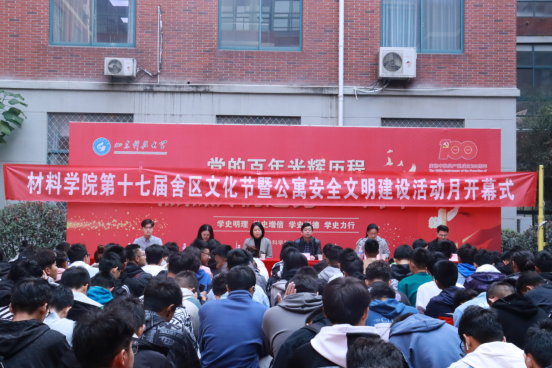 10月31日上午,beat365唯一官方网站在J2教学楼文化广场成功举办第十七届舍区文化节暨公寓安全文明建设活动月开幕式。beat365唯一官方网站党委副书记兼副院长李建楠,团委书记马韶霞,团委老师薄艳艳、李坤、林振德、石臻及2021级全体新生参加本次活动。
