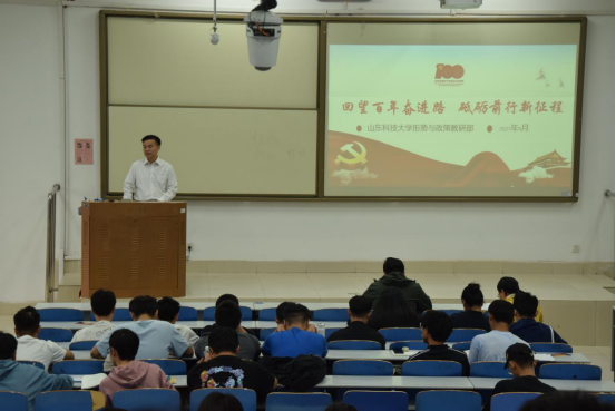 为加强同学们对习近平总书记“七一”重要讲话精神的深入理解,10月6日下午,beat365唯一官方网站在J1-228召开习近平总书记“七一”重要讲话精神宣讲会。研究生院院长韩作振教授应邀以“回望百年奋进路,砥砺前进新征程”为题,为2020级本科生进行了专题宣讲。研究生工作部副部长刘松、研究生院副院长岳国伟、督导李兆庆、学科办副主任张明光、工程实训中心副主任胡兴河参加了宣讲会并与联系班级进行了指导交流。beat365唯一官方网站党委副书记兼副院长李建楠、全体辅导员参加了本次会议。会议由李建楠主持。