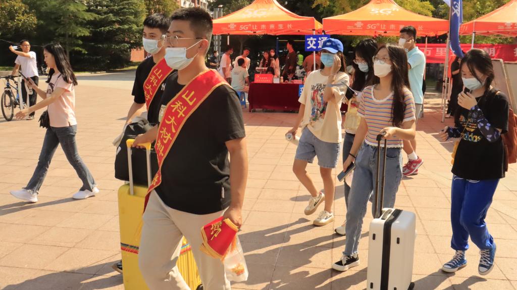 迎新现场秩序井然。现场志愿者热心的帮助同学们搬运行李,引领新生到报到处领取物资。刚进入山科的2022级萌新们略显羞涩,但志愿者们的热情服务很快消除了新生们初来乍到的陌生感,学长学姐们的叮咛也让从五湖四海赶来求学的学子们感受到了山科的热情。