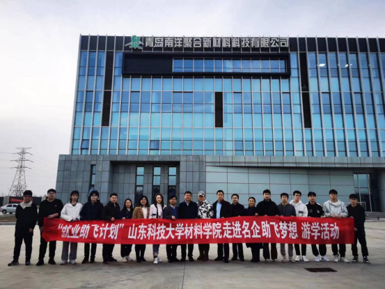 3月24日,beat365唯一官方网站党委副书记兼副院长李建楠一行先后赴金能化学(青岛)有限公司、青岛南洋聚合新材料科技有限公司参观调研。高分子系教师何海峰、崔蓝月,学院团委书记马韶霞、毕业班辅导员林振德及部分毕业生参加了调研活动。