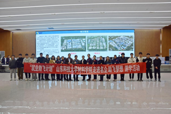 金能化学(青岛)有限公司人力资源部经理王雅妮、青岛南洋聚合新材料科技有限公司董事长孙志强,分别对学院领导老师的到访表示热烈欢迎,并从企业发展与经营、主要产品及应用领域、企业价值观、发展愿景等方面进行详细介绍,带领师生参观了生产基地及产业园区。