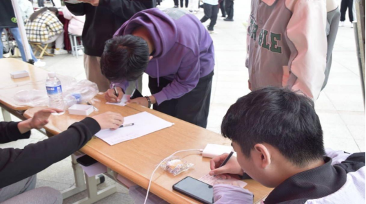 活动分为“青春理想信念盒”、“五四青年歌曲放送”和“五四精神接力画”三个环节。同学们首先前往繁星广场领取明信片,写下自己对未来一年内的期望,写好后交由工作人员将其封存;然后,在工作人员指引下听歌识曲,猜出红色歌曲名称;最后,用所提供的笔与颜料在绘画卷轴上分别进行涂色、自由绘画与题字签名。