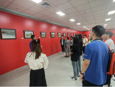 活动期间全体党员参观了俄罗斯著名画家瓦伦丁·德米特里耶夫油画作品展。活动开始,隋沂灵向大家介绍了瓦伦丁教授的基本情况与作品风格。据了解,瓦伦丁·德米特里耶夫·谢尔盖耶维奇是莫斯科斯特罗加诺夫国立美术学院油画系教授、著名风景画家,在俄罗斯及国际画坛有重要的影响力,多次在俄罗斯、西欧各国和中国等地举办展览,本次作品展包含了瓦伦丁教授的57幅作品。随后,全体党员带着对“美育教育的意义”“最喜欢的作品”“最喜欢的绘画形式”等问题的思考沉浸于油画鉴赏中。