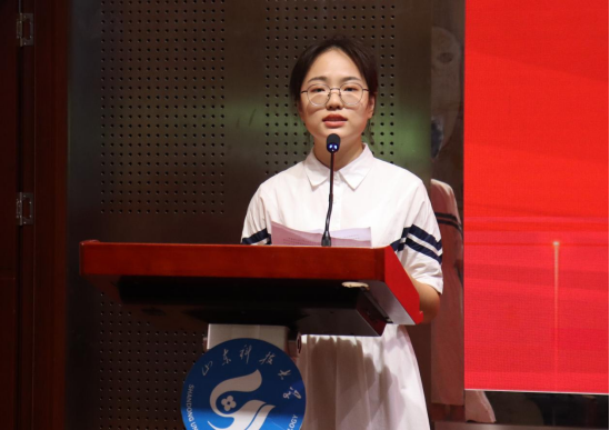道恩集团有限公司副总裁刘丽丽致辞,她表示企业始终重视尊重人才、重视人才、关爱人才,积极承担培育青年人才的社会责任,希望继续深化校企合作,持续推进校企协同育人。金能化学(青岛)有限公司人力资源部王雅妮经理致辞,她为当代大学生发展提出了三点建议:一是要设立明确的奋斗目标,不断激励自己进步和学习;二是要融入团队,不断提升团队意识、合作能力;三是要付诸行动,用行动收获成长。获奖学生代表高分子材料与工程2019-4班李建敏进行了发言,她表示将铭记设奖企业的关怀和帮助,并将企业的支持转化为前行的动力,牢记初心使命,努力学习、躬身实践,以实际行动回报学校、回报社会。