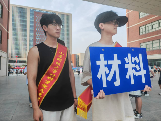 2023级萌新们进入校园后,首先到J1教学楼北侧进行身份核验,随后经过志愿者引领来到图书信息中心南侧广场进行报到并领取校园卡等相关物品。报到结束后,志愿者全程“服务”,帮助新生搬运行李,介绍校园风景,将新生“护送”至宿舍,让新生出充分感受到了学校学院的热情关怀。