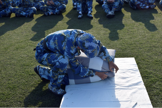 除了日常的队列训练之外,教官还对同学们军训期间的内务整理作了要求,并亲自上阵为同学们展示,同学们学习体验了将如何被子叠成“豆腐块”,以及衣服的叠法、物品收纳等,增加了军训趣味性的同时也培养了同学们良好的个人习惯,有助于养成严谨细致的生活作风。