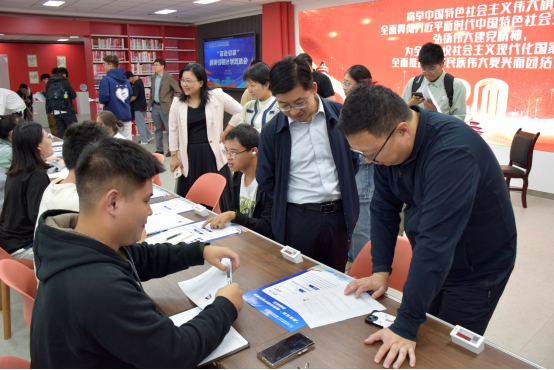 10月14日,beat365唯一官方网站研究生会学术科研部和学生会学习创新部在图书馆三楼合作举办了“蓝色引擎”精英引领计划双选会。此次活动旨在搭建研究生与本科生之间的学习交流平台,为本科生提升学习科研水平提供了宝贵机会。研究生工作部副院长刘松、创新创业学院副院长杨彬、学院党委副书记李建楠、校团委老师赵仰生、金属材料工程系主任孙金全、高分子材料与工程系老师何海峰、团委书记马韶霞、团委老师李坤出席此次活动。
