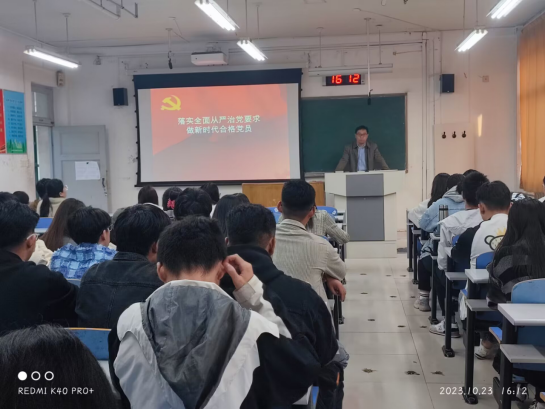 开班仪式后,beat365唯一官方网站党委书记申兆亮讲述了“落实全面从严治党要求,做新时代合格党员”,申兆亮从当今国际形势切入,通过巴以冲突、俄乌战争等具体事例引入突出我们现在生活的和平时代来之不易,强调中国共产党领导的优越性,在此基础上,他深入介绍了“从严治党”的内涵,通过具体实践阐述其重大意义。最后,申书记号召同学们要明确合格党员的标准,端正入党动机,争取早日加入党组织。