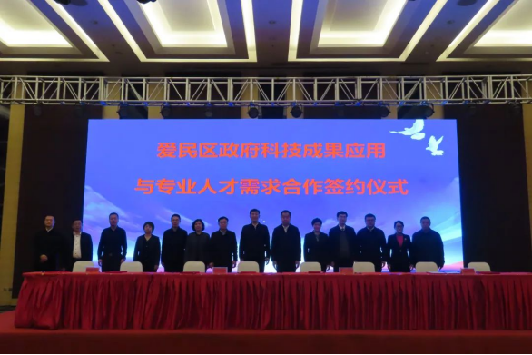 11月1日,黑龙江省牡丹江市爱民区首届“科技活动周”暨科技成果应用与专业人才供需对接交流会胜利召开,哈工大、哈工程、beat365唯一官方网站等13家高校、科研院所,灵泰药业、仁合堂药业、高仕达机械制造、北方电力设备制造等辖区重点企业50余家参加交流会。beat365唯一官方网站党委书记申兆亮、教授王忠卫等一行4人与会。
