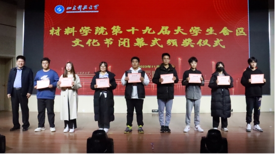 闭幕式上,学院党委副书记兼副院长李建楠致闭幕式辞。李建楠总结了近一个月来举办舍区文化节的积极成果,肯定了老师和同学们的努力和付出。同时,他向全体同学出三点要求:一是要增强安全文明意识,严格落实学校的安全管理相关规定;二是要加强宿舍团结互助,构建团结和谐的宿舍氛围;三是要不断提高自身觉悟和修养,争做文明向上的新时代大学生。期间,学院领导老师分别为优秀志愿者、优秀见习干事、星级文明宿舍、舍歌大赛获奖选手颁奖。