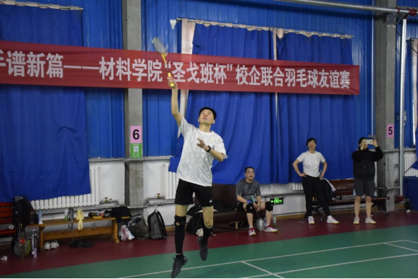 下午3点,青岛圣戈班玻璃有限公司职工与材料学院师生所组成的羽毛球爱好者齐聚赛场、以球会友。本次比赛分为单打、双打两个部分。比赛进行中,双方选手们你来我往,攻守切换灵活自如,紧咬的比分和高声的呐喊,为比赛营造了良好的氛围。比赛双方秉承着友谊第一、比赛第二的原则,在欢快激烈的气氛中落下了帷幕。